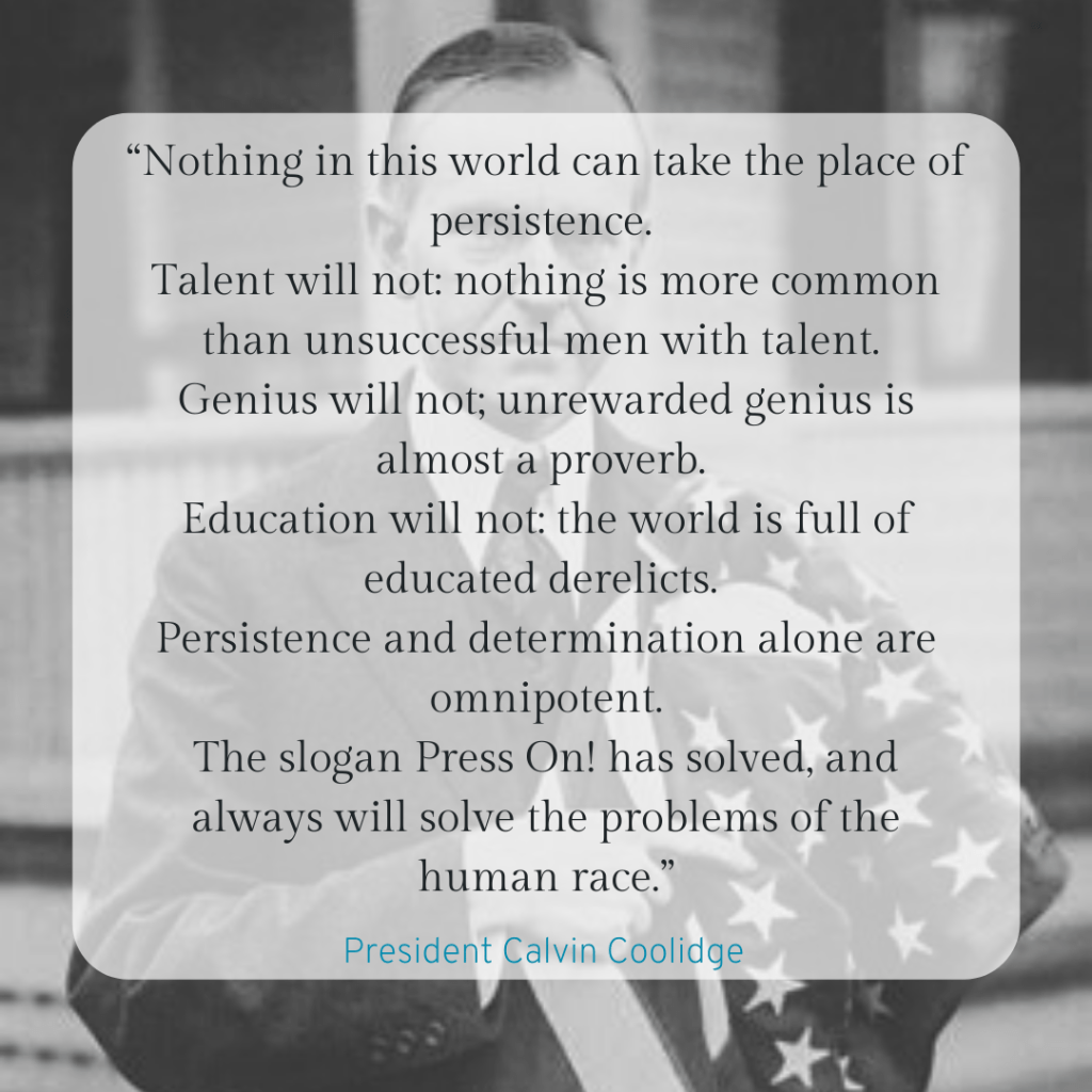 My favorite President, Calvin Coolidge, had a touch of the stoic in him. One of my most often cited quotes from him is an important reminder for all of us in the advocacy realm – now and always.